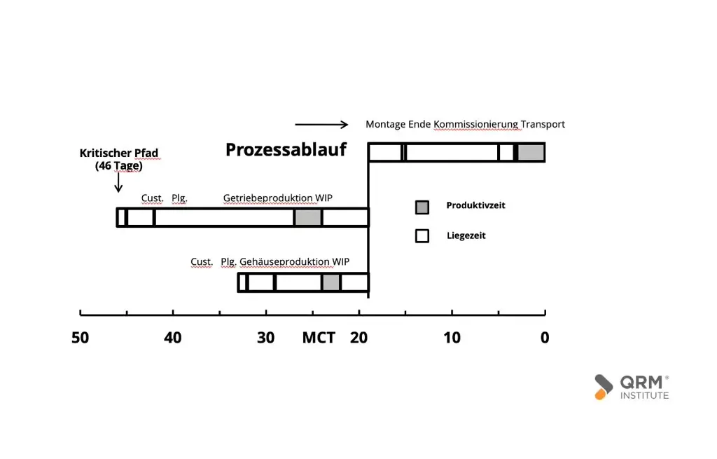 Die MCT ist ein wertstromorientiertes Analyseinstrument, das den Fokus auf die Zeit richtet. Dabei wird die Zeit, in der mit dem Auftrag nichts passiert, die sogenannte Liegezeit oder auch "White Space", berücksichtigt. Empirische Untersuchungen in verschiedenen Unternehmen haben gezeigt, dass das Verhältnis zwischen Produktivzeit und Liegezeit im Durchschnitt bei 5/95 liegt. Der WIP stellt dabei einen wesentlichen Indikator dar.